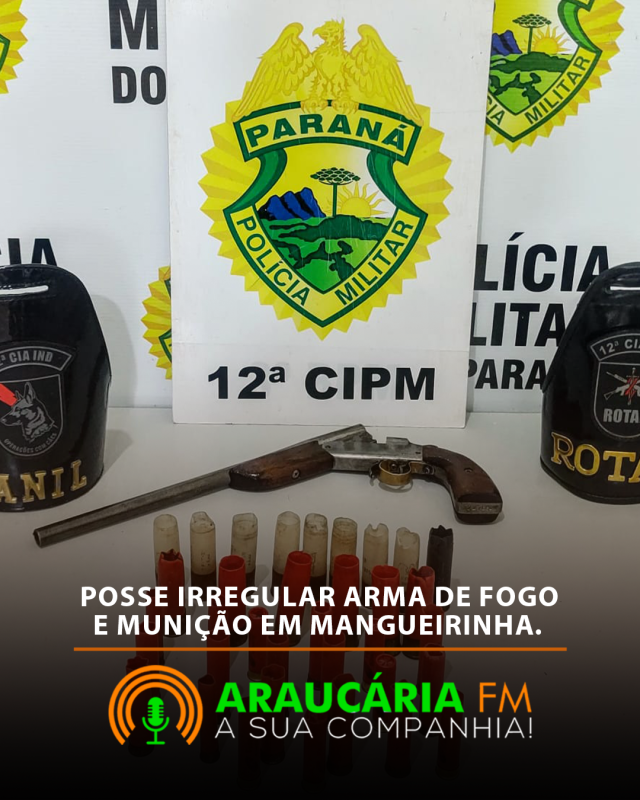 Equipe ROTAM/CANIL recebeu informações e denúncias anônimas de um masculino em Mangueirinha que estaria embriagado e realizando disparos de arma de fogo em via pública, na direção de outros indivíduos. Foi logrado êxito em localizar o autor dos fatos e a arma de fogo, além de diversas munições e materiais para recarga.