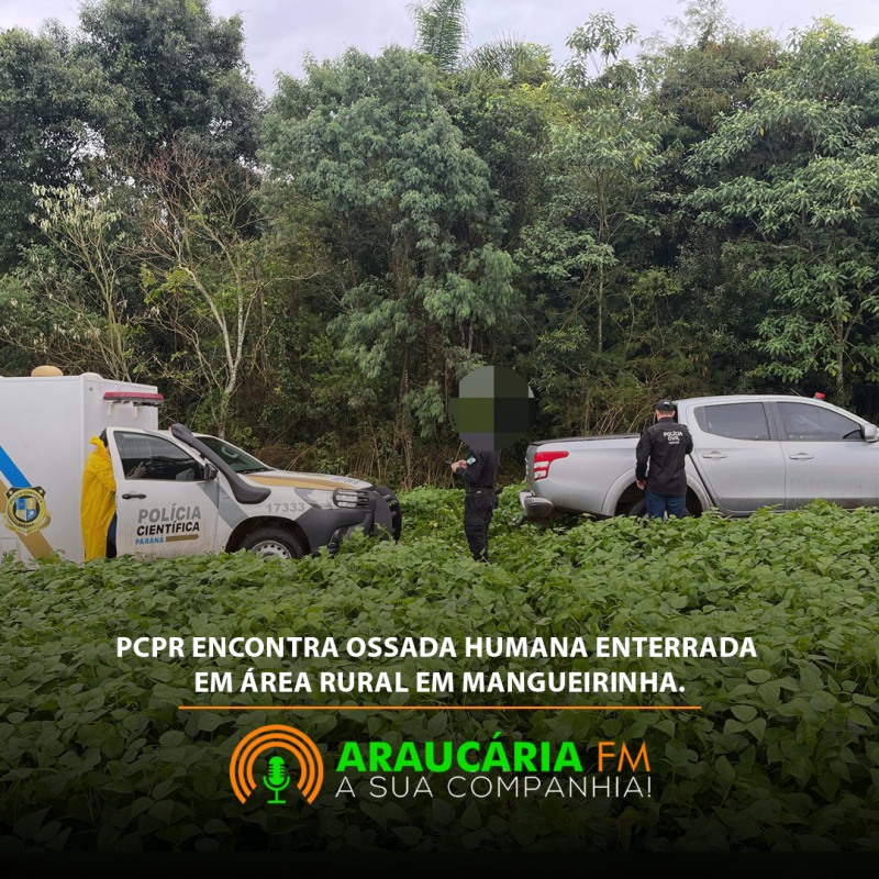A Polícia Civil do Paraná (PCPR), nesta manhã, de terça-feira (08/04), ao realizar diligências encontrou uma ossada humana enterrada no interior na comunidade do portão Mangueirinha/PR.