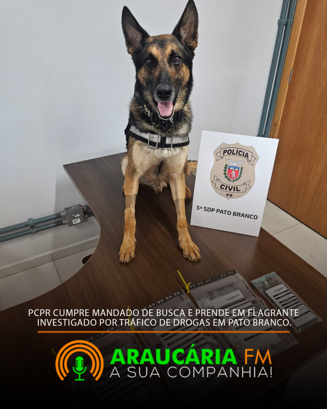 A Polícia Civil do Paraná (PCPR), por meio da 5ª Subdivisão Policial de Pato Branco, cumpriu nesta quinta-feira (19/02) mandado de busca e apreensão em face de suspeito da prática do crime de tráfico de drogas, no município de Pato Branco.